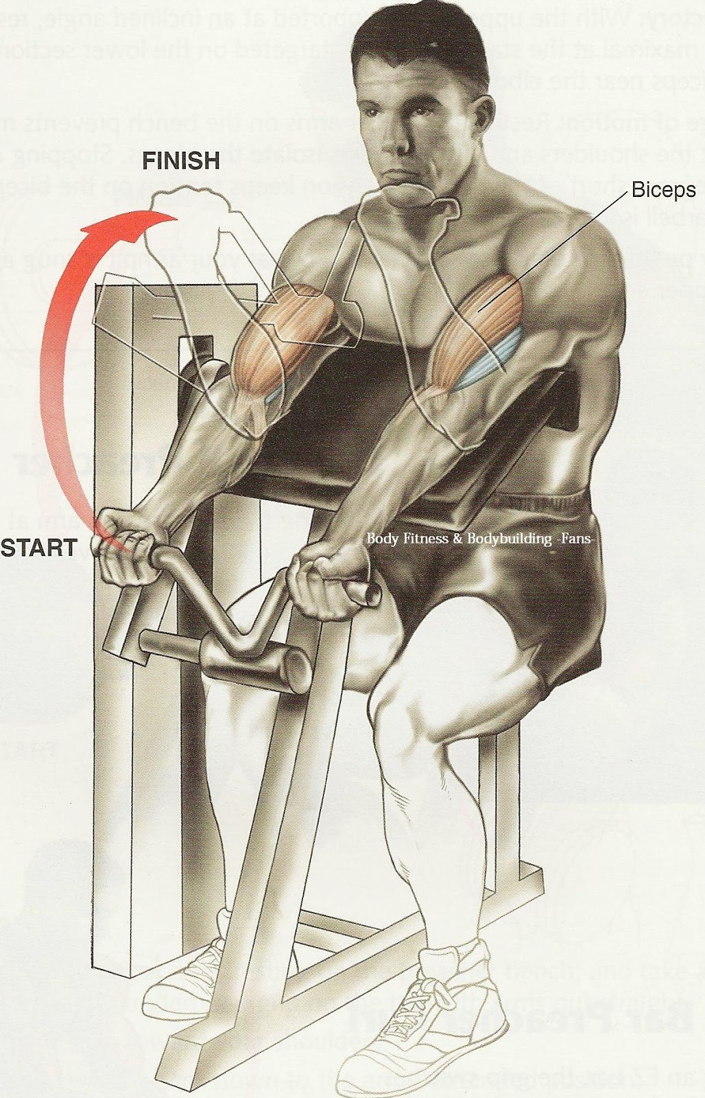 Кто использует скамью давно, помнит, что сначала вес тянется легко, а вот последние 15–20 градусов намного тяжелее. Поэтому, когда подбираете рабочий вес, ориентируйтесь именно на последнюю верхнюю фазу упражнения. Иначе, если вы будете выбирать вес по первоначальному сгибанию руки – завершить нужное количество сгибаний вы не сможете.